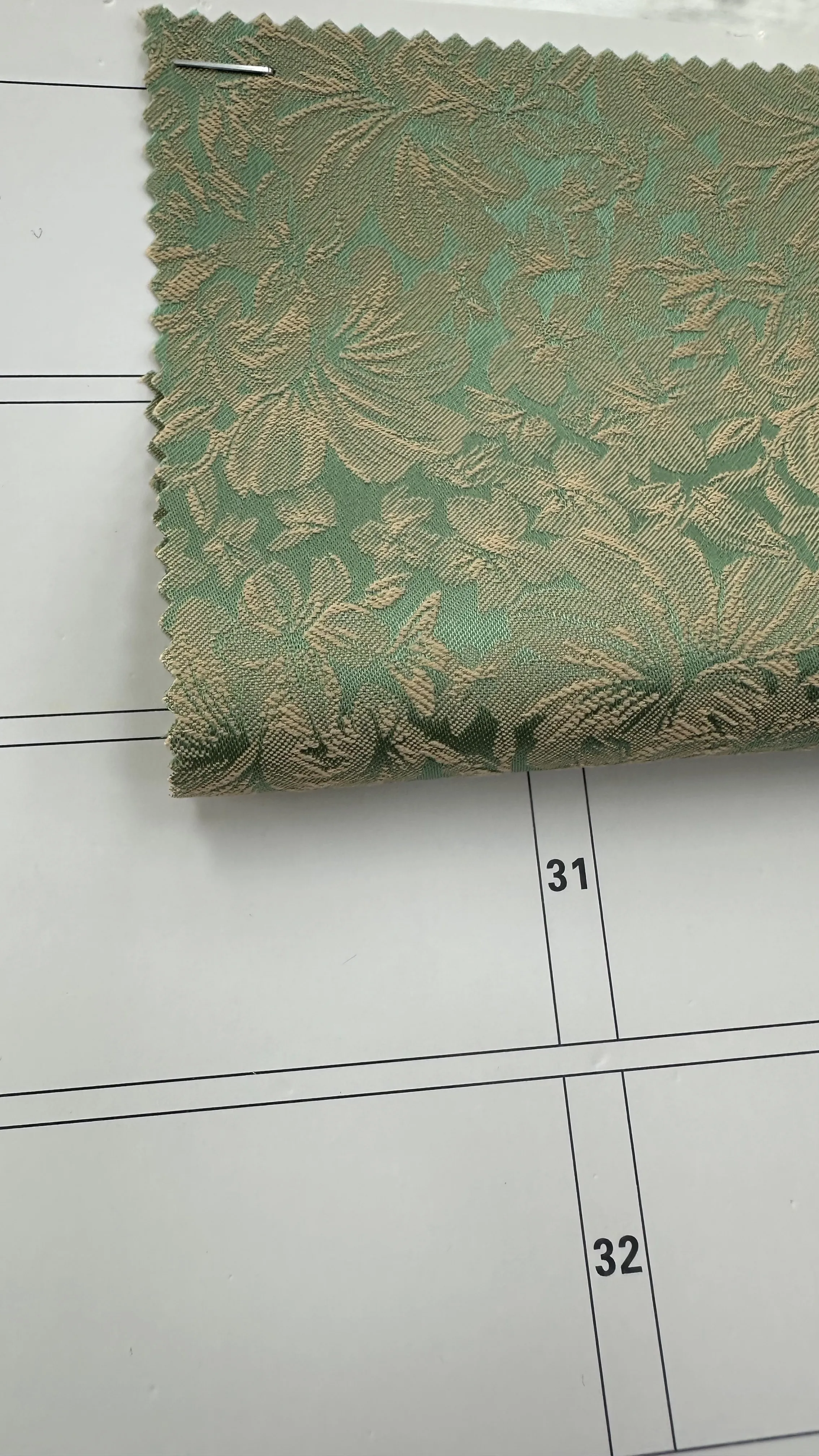 Đây là chất liệu Lụa Gấm Jacquard nổi bật với họa tiết hoa lá được dệt chìm nổi 3D, tạo ra hiệu ứng chuyển sắc và ánh kim lấp lánh khi có ánh sáng chiếu vào.